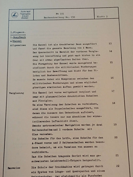 Konvolut von 11 Baubeschreibungen speziell zu Focke-Wulf-Flugzeugtypen. Heftnumern LD 1-11, aus der Reihe " Luftfahrt Dokumente ".