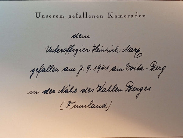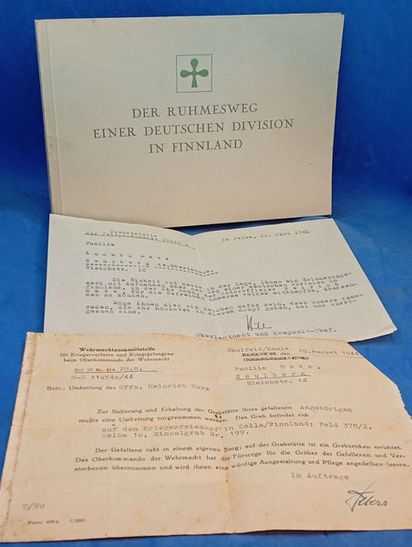 The Glorious Journey of a German Division in Finland. Photo book of the 169th Infantry Division. With original accompanying text of the presentation by a company commander to the Marx family, as well as the original reburial certificate of Sergeant Marx in Finland.
